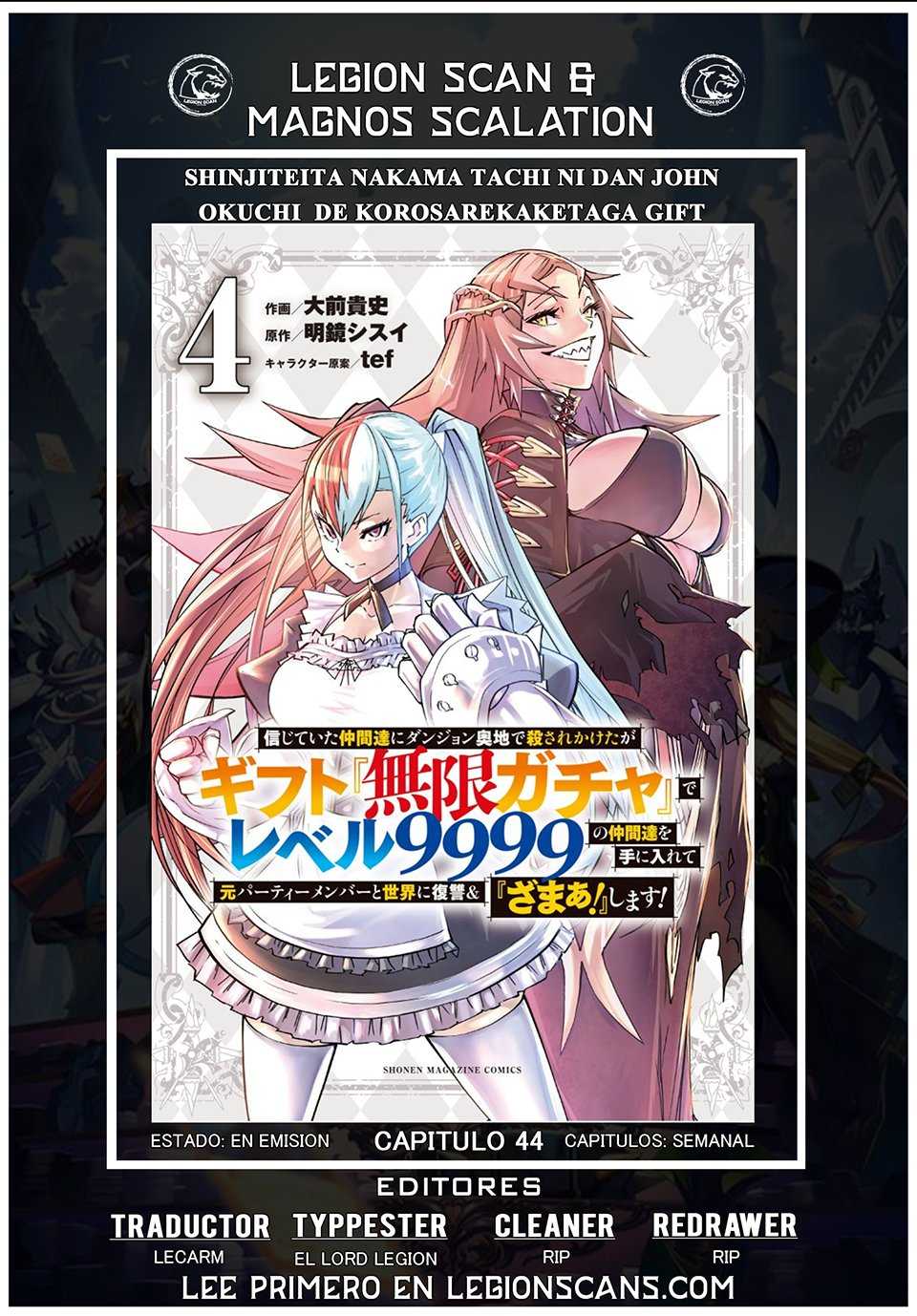 Shinjiteita Nakama Tachi Ni Dungeon Okuchi De Korosare Kaketa ga Gift 『Mugen Gacha』 De Level 9999 No Nakama Tachi Wo Te Ni Irete Moto Party Member To Sekai Ni Fukushu & 『Zamaa!』 Shimasu! - Capitulo 44