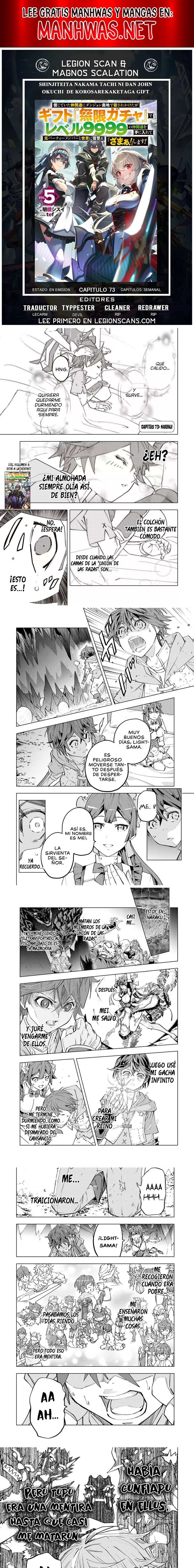 Shinjiteita Nakama Tachi Ni Dungeon Okuchi De Korosare Kaketa ga Gift 『Mugen Gacha』 De Level 9999 No Nakama Tachi Wo Te Ni Irete Moto Party Member To Sekai Ni Fukushu & 『Zamaa!』 Shimasu! - Capitulo 73